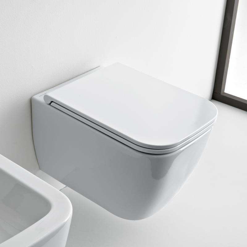 Il vaso sospeso Scarabeo modello Teorema 2.0 rappresenta il sanitario ideale per chi desidera conferire al proprio bagno uno stile moderno e per creare una stanza del bagno dal mood giovane.