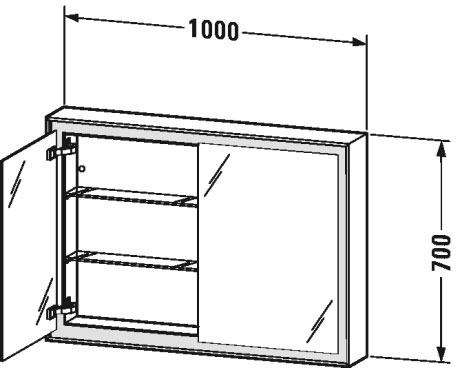IP 44, illuminazione LED (su 4 lati), 2 ante a specchio, 2 ripiani in vetro (trasparente), parete posteriore interna a specchio, 1 presa di corrente con coperchio, all'interno a destra, 1 interruttore a sensore sotto a dx, funzione dimmer per LED, LED (durata >30.000 ore), diodi fissi, classe di efficienza energetica: A, modulo LED 3500 Kelvin di temperatura di colore, 46 W.