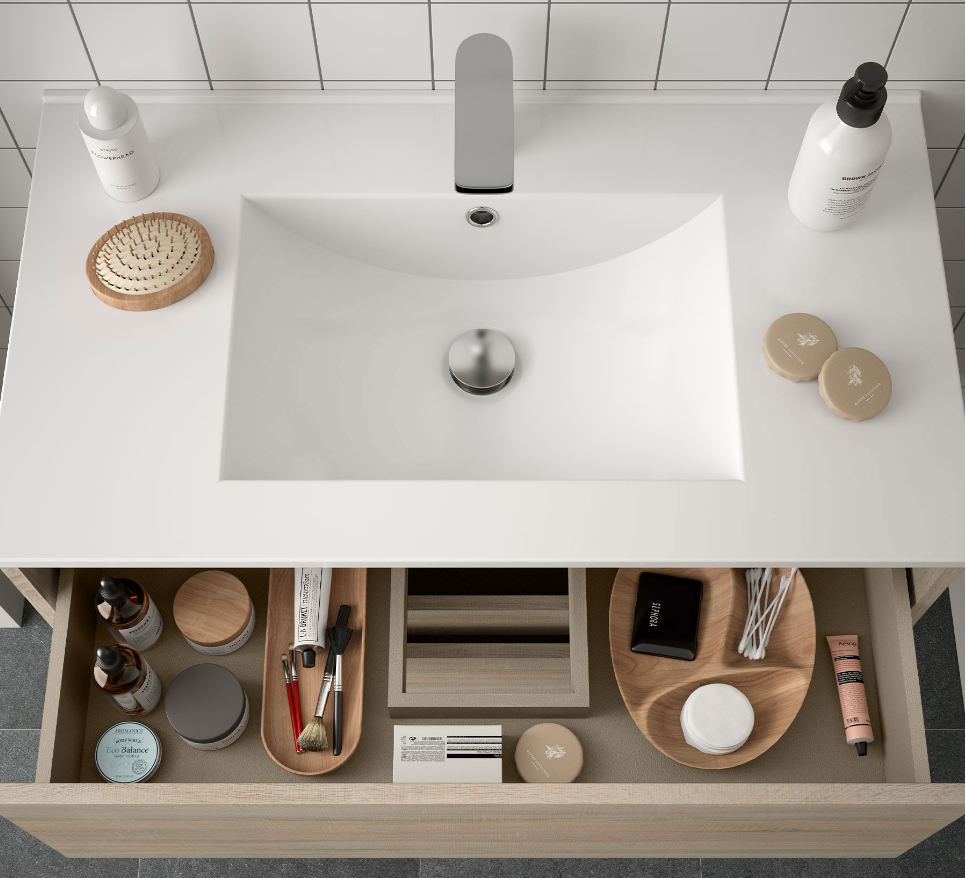 Il mobile Nori ha un design moderno ideale per i bagni di dimensioni piccole e per chi non vuole rinunciare alla funzionalità e la comodità ad un prezzo contenuto.