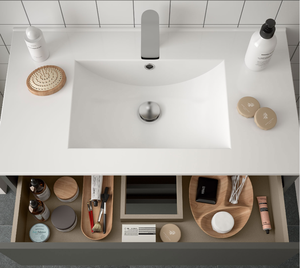 Il mobile Nori ha un design moderno ideale per i bagni di dimensioni piccole e per chi non vuole rinunciare alla funzionalità e la comodità ad un prezzo contenuto.