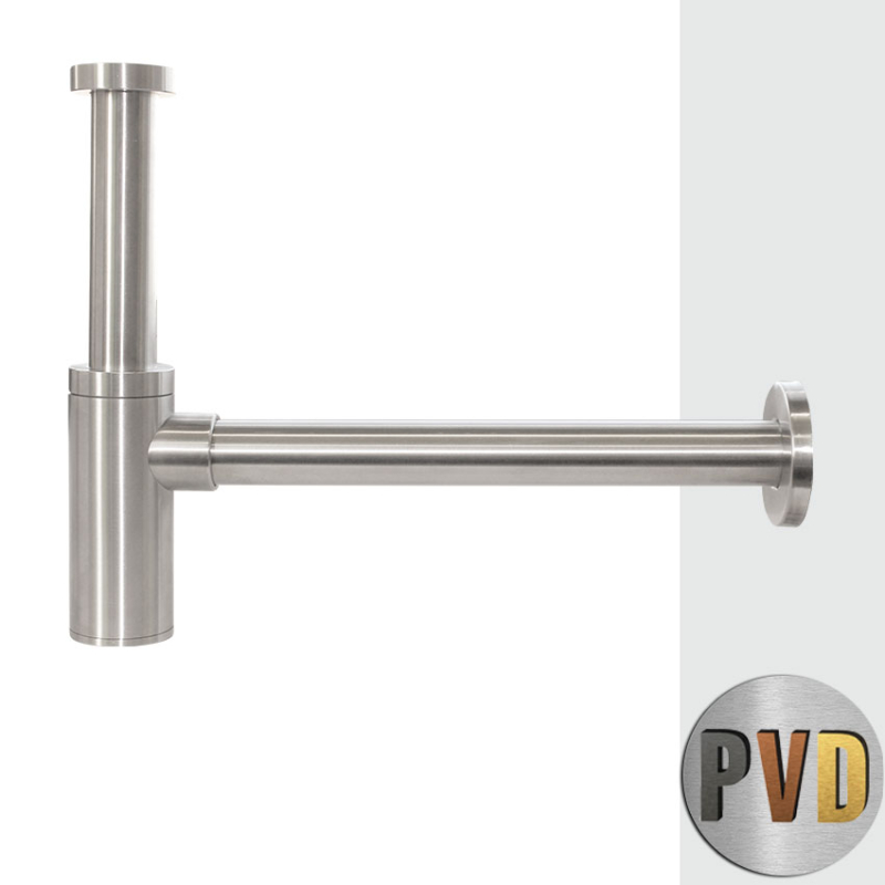 Sifone "minimal” in acciaio inox per lavabo, canotto cm 30 e rosone pesante.