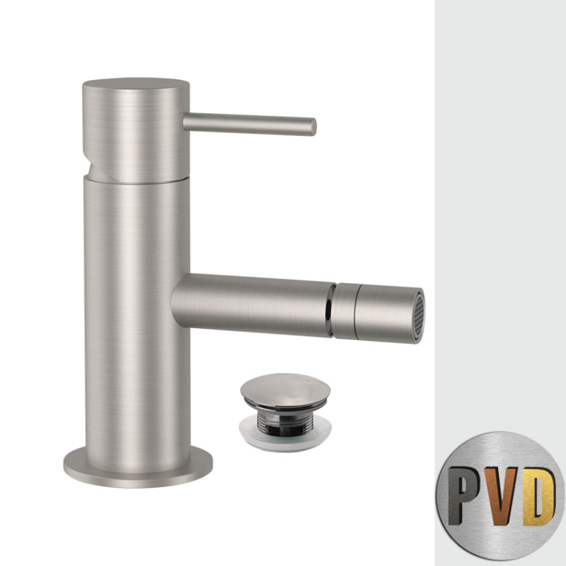 Monocomando bidet,con scarico click-clack e senza foro sul corpo, in acciaio inox.