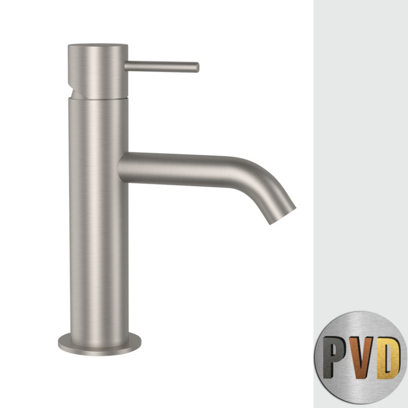 Miscelatore monocomando lavabo senza scarico e senza foro sul corpo, in acciaio inox spazzolato.